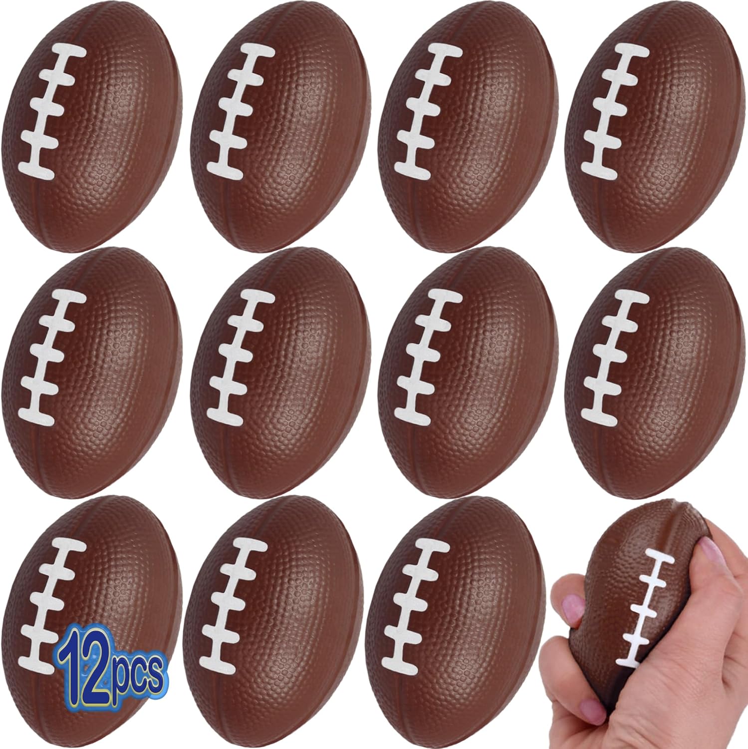 Great for Everyone! - Children and adults will enjoy throwing and squeezing these mini foam sports balls! Great for relieving stress. Makes for a great party favor and for Sports theme parties! Each pack includes 12 balls. Sets available in all Footballs, Baseballs, Soccerballs, Basketballs and also in a Mix Pack. You Choose! Made from foam, each football measures approximately (3.25" in. height) x (2.25" in. width). Great entertainment indoors and outdoors. A fun theme party prop!