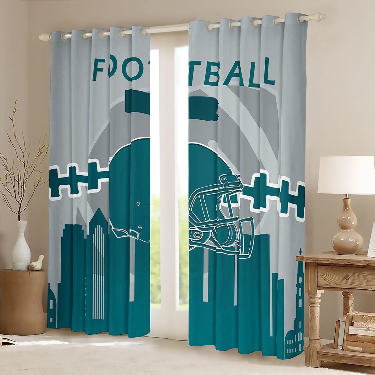Erosebridal Football Curtains 38x54 inch,Sports Window Curtains,Rugby Team Window Treatments,Football Shades Drapes 2 Panels for Living Room,